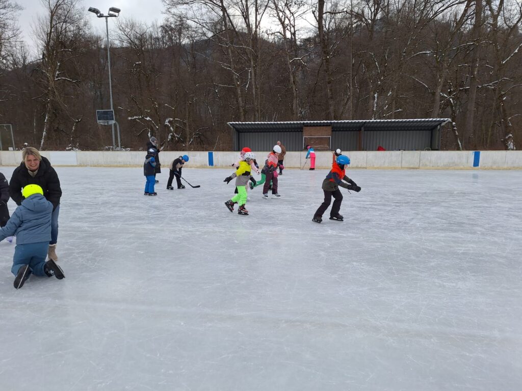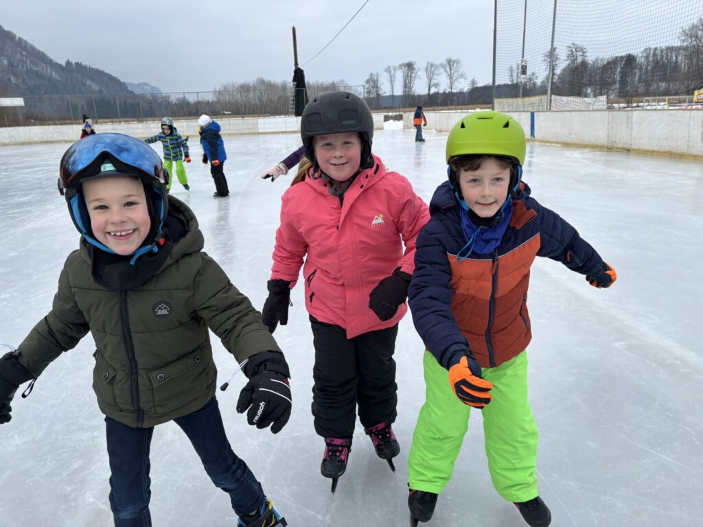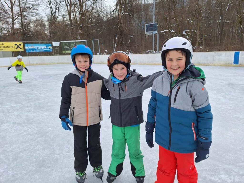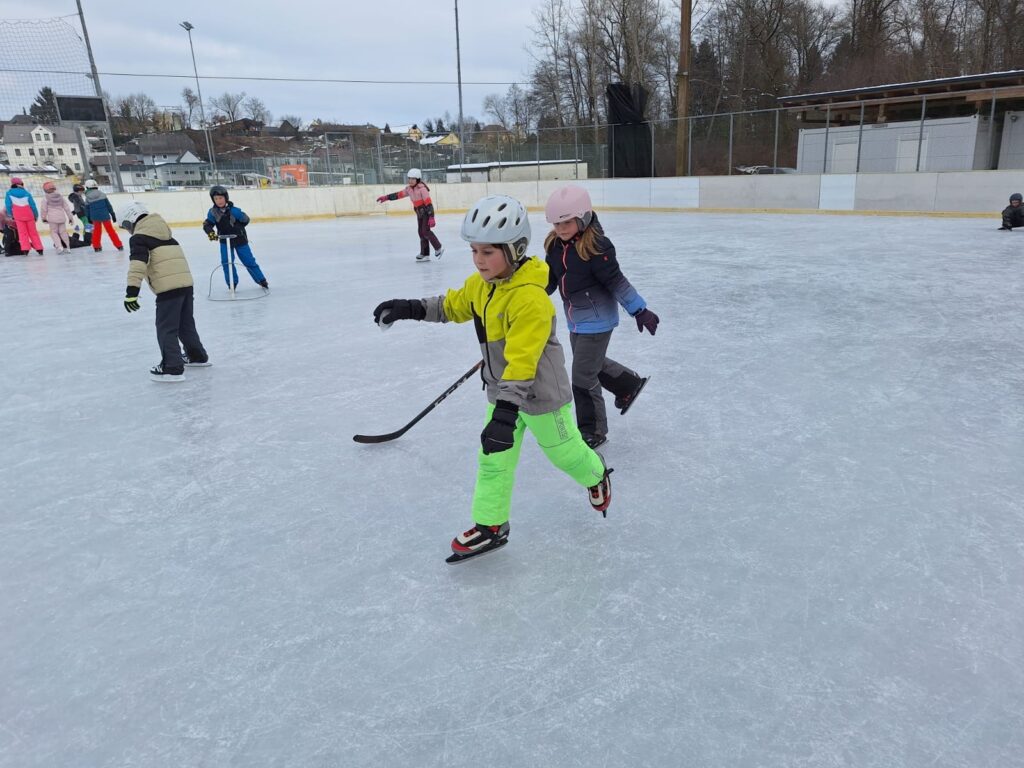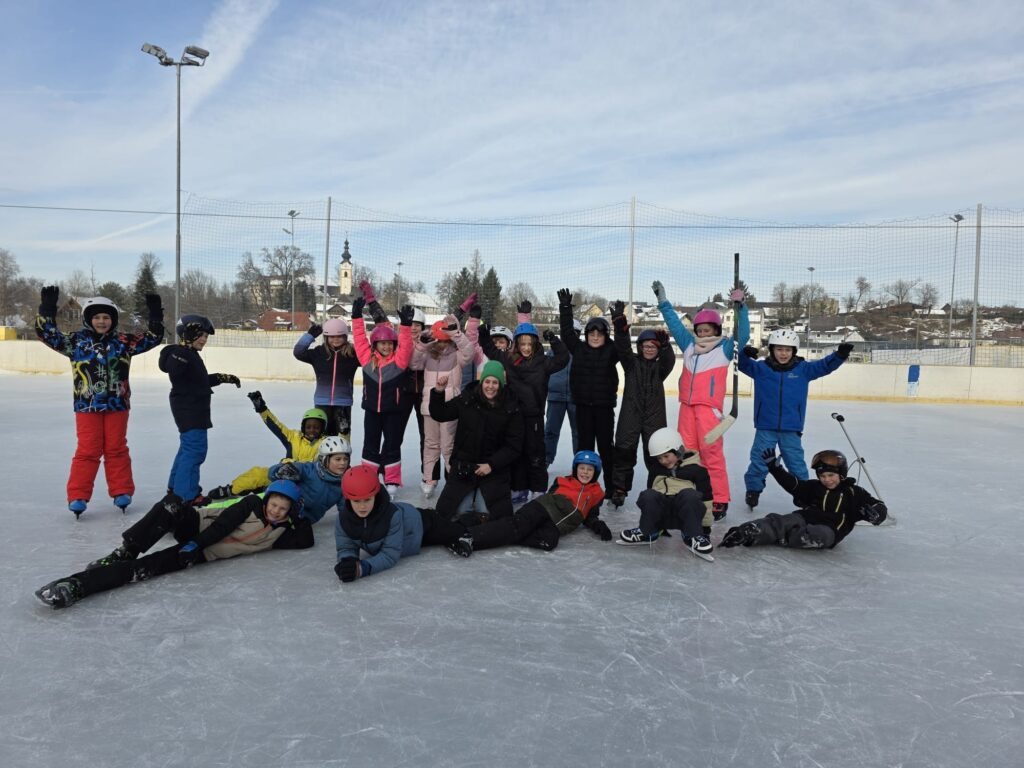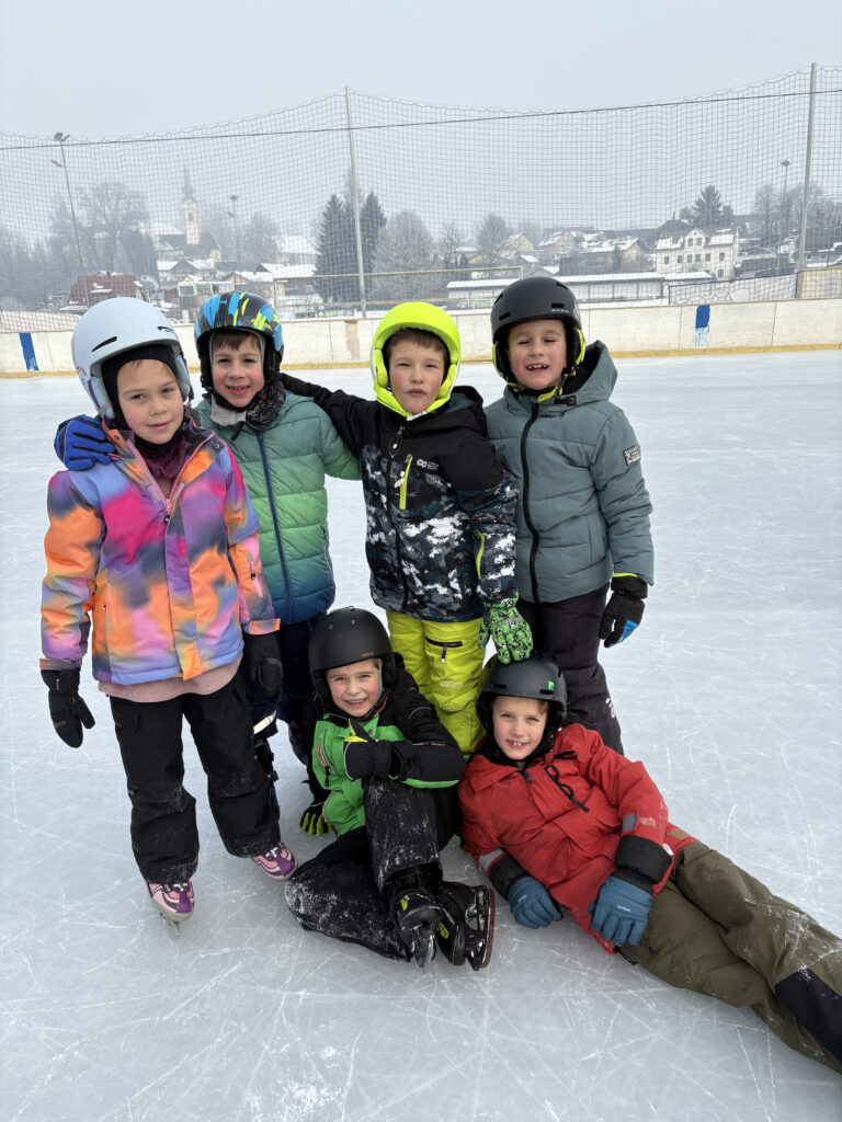 Die Kinder verbrachten fröhliche und aktive Tage am Eislaufplatz in Grafenstein. Mit viel Begeisterung wagten die Schülerinnen und Schüler ihre ersten Schritte auf dem Eis, übten fleißig das Gleichgewicht und drehten bereits sicher ihre Runden. Neben dem Eislaufen kam auch der Spaß nicht zu kurz – gemeinsam wurde gelacht, gespielt und die winterliche Atmosphäre genossen.