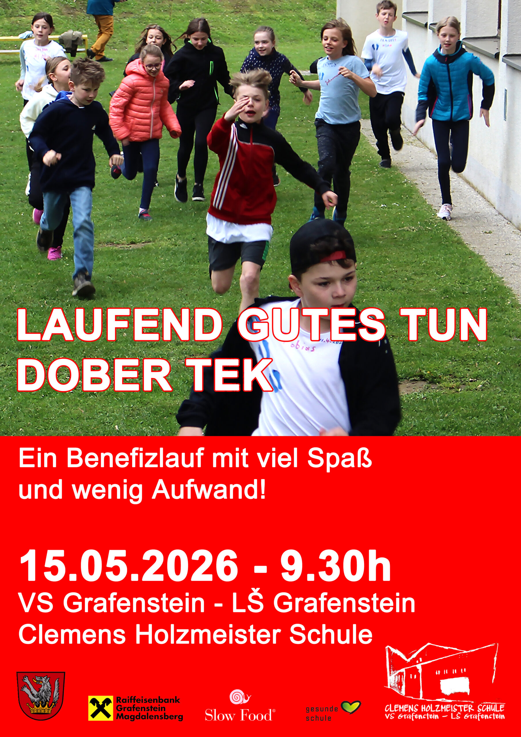 Am 15. Mai 2026 veranstaltet unsere Schule einen Benefizlauf unter dem Motto „Laufend Gutes tun – Dober tek!“.